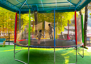 A safe and joyful space designed especially for children, trampolin , Kids Spinning Cars, and play equipment so families can relax while kids have fun.
